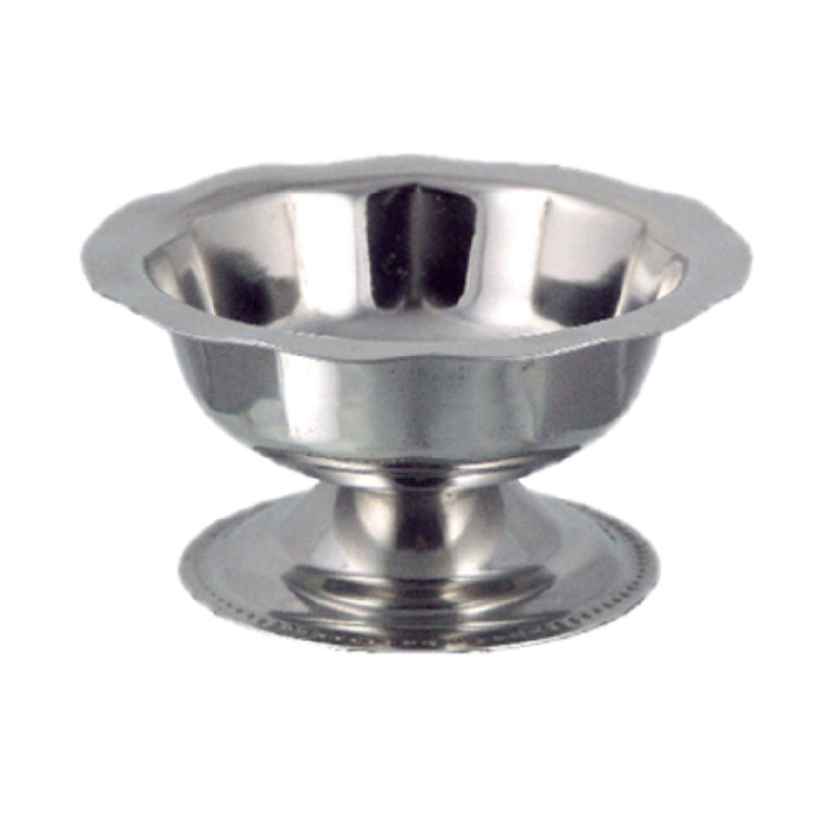 The International Tableware IDS-I-HG5 Sherbet Dish is a meticulously crafted dining accessory designed to enhance any culinary presentation. With a capacity of 5 ounces, it is perfect for serving delicate desserts like sherbet in style. Measuring 4 inches in diameter and 2 inches in height, this sherbet dish provides an ideal serving size while maintaining an elegant profile. Constructed with a thickness of 0.5mm, it ensures durability and a long-lasting performance in various dining settings. The dish features a high gadroon base, adding a touch of sophistication and stability to its design. Made from durable stainless steel, it is part of the Holloware collection, known for its robustness and resistance to wear and tear. This dish is conveniently packed by the dozen, making it a practical choice for busy restaurants, hotels, or catering services that require efficiency without compromising on quality. Whether used in fine dining establishments or for special events, the International Tableware IDS-I-HG5 Sherbet Dish provides a harmonious blend of style and functionality, ideal for presenting desserts with a touch of class.