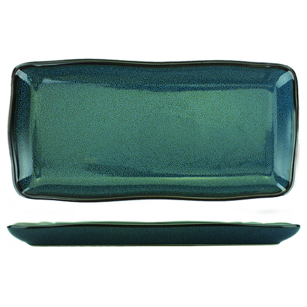 The International Tableware LU-133-MI Platter 13"-6-1/2" Rectangular is a versatile and stylish addition to any dining setting, combining both aesthetic appeal and practical functionality. This platter, measuring 13 inches by 6-1/2 inches, is crafted from fully vitrified stoneware, ensuring durability and resistance to chipping and cracking. It features a hand-painted reactive glaze in a striking Midnight Blue, adding an elegant touch to its design. The platter is lead-free, making it a safe choice for serving a variety of dishes. Its rectangular shape provides ample space for presenting culinary creations, making it ideal for both home use and professional culinary environments. The LU-133-MI platter is microwave and dishwasher safe, offering convenience for everyday use and easy maintenance. This platter is part of the Luna line, packed by the dozen, catering to restaurants, hotels, and caterers who require reliable and stylish serving ware. The combination of its technical specifications and distinctive design makes this platter a unique offering in the tableware industry, appealing to diverse market segments seeking quality and style.