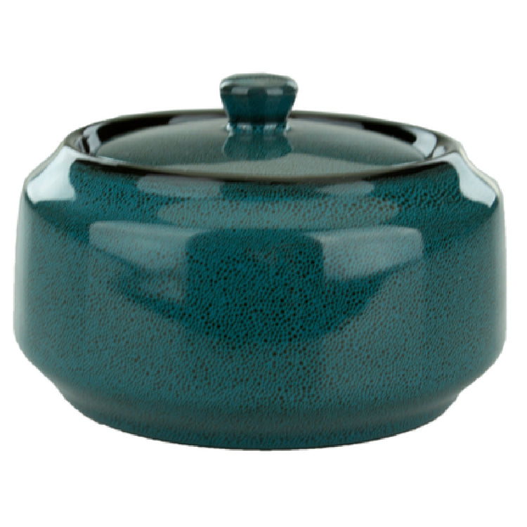 The International Tableware LU-61-MI Sugar Container is a meticulously crafted piece of serveware, featuring a capacity of 13 oz. and dimensions measuring 4-1/2 inches in top diameter and 3-3/8 inches in height. It is designed in a round shape and comes equipped with a secure lid, ensuring the safe storage of sugar and other condiments. This container is both microwave and dishwasher safe, adding a layer of convenience for everyday use. Made from lead-free, fully vitrified stoneware, it promises durability and safety for food contact. The container is adorned with a hand-painted reactive glaze finish in a stunning Midnight Blue, part of the Luna™ collection, which adds a touch of elegance and uniqueness to any tabletop setting. Packed by the dozen, it is suitable for a variety of market segments, including restaurants, cafes, and home kitchens that require both functionality and aesthetic appeal in their serveware. Its robust construction and visually appealing design make it a versatile addition to any culinary environment, ensuring it meets the practical and stylistic needs of diverse industry settings.