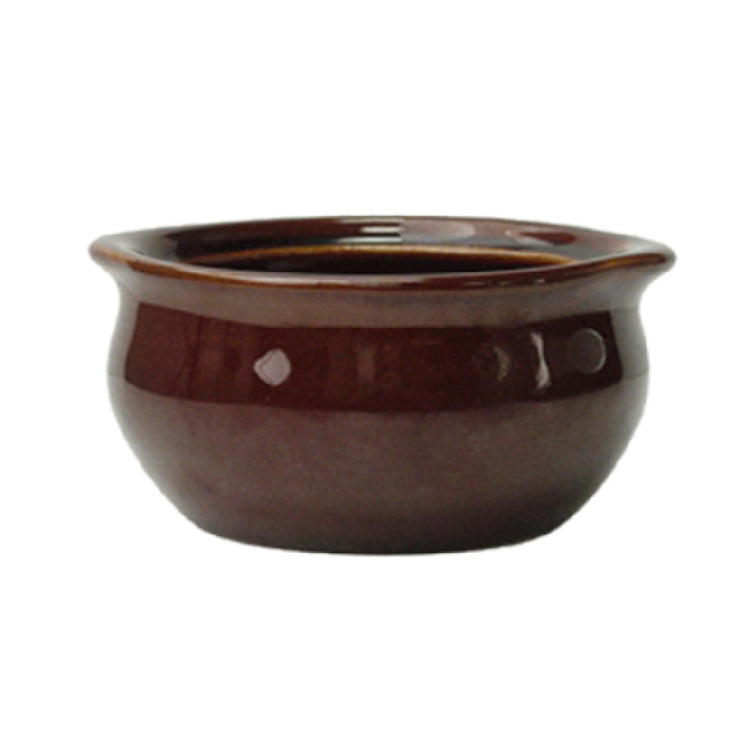 The International Tableware OSC-12 Soup Crock is a meticulously crafted product, boasting a 12 oz. capacity, making it an exceptional choice for various segments of the food service industry. Its dimensions, measuring 5-1/4 inches in diameter and 2-3/8 inches in height, provide ample space for serving hearty portions of soup or other hot dishes. This soup crock is constructed from lead-free, stoneware-ceramic, ensuring both safety and durability, a critical factor for busy kitchens and catering services. Designed with versatility in mind, the crock is oven, microwave, and dishwasher safe, and can withstand oven temperatures up to 450°F, making it highly functional for both cooking and serving needs. The caramel color adds a warm, appealing aesthetic suitable for a range of dining environments, from casual to more upscale settings. Packed by 4 dozen per case, it is an ideal solution for large-scale dining establishments that require efficient inventory management. The International Tableware OSC-12 Soup Crock effectively combines practicality with style, offering a reliable and attractive option for restaurants, hotels, and catering businesses looking to enhance their service presentation.