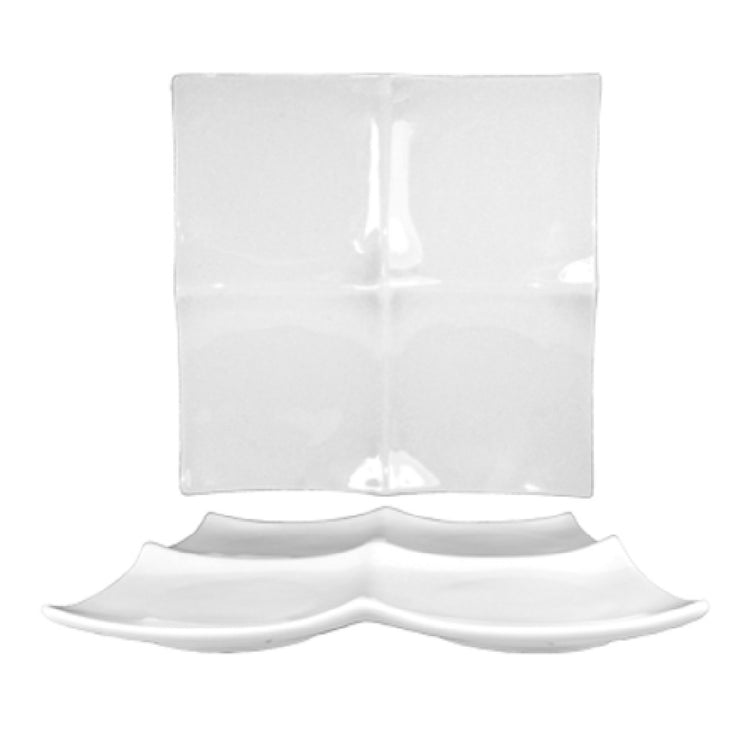 The International Tableware PA-407 Plate 7-3/4" x 7-3/4" Square is a sophisticated dining solution engineered for both aesthetic appeal and practical functionality. This porcelain plate is fully vitrified, ensuring durability and resistance to moisture absorption, making it a robust choice for high-traffic dining environments. The square coupe design, featuring four wells, is ideal for segmenting ingredients or dishes, offering versatility in presentation for various culinary creations. Its bright white finish provides a classic and elegant backdrop, enhancing the visual appeal of any dish, a suitable choice for upscale restaurants, catering services, or any food service operation requiring a touch of refinement. The PA-407 plate is microwave and dishwasher safe, allowing for seamless integration into fast-paced kitchen operations, and ensuring easy maintenance without compromising its sleek appearance. Lead-free construction ensures safety and peace of mind, aligning with health-conscious dining standards. Packed by the dozen, this plate provides an efficient solution for establishments needing reliable and consistent tableware in bulk. The International Tableware PA-407 Plate exemplifies a blend of style and practicality, catering to diverse segments within the food service industry, from modern eateries to traditional dining venues, offering a dependable choice for presenting culinary excellence.