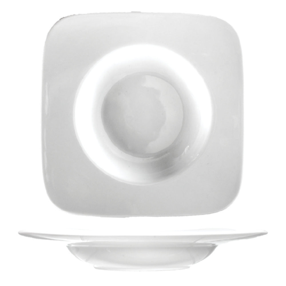 The International Tableware PA-975 Pasta/Salad Bowl is a versatile serving solution designed to complement any culinary presentation. This bowl holds a capacity of 13 oz., making it suitable for individual servings of pasta or salad. It measures 9-3/4 inches in diameter and stands 1-3/4 inches high, providing ample space for a variety of dishes. The bowl features a unique square shape with a round well, offering a modern aesthetic that stands out on any table setting. Its wide rim not only enhances its visual appeal but also provides ease of handling. Crafted from fully vitrified porcelain, the bowl is both microwave and dishwasher safe, ensuring convenience in fast-paced kitchen environments while maintaining durability. The lead-free, Bright White finish of the bowl adds a touch of elegance, making it an ideal choice for upscale dining establishments as well as casual eateries seeking to elevate their service. The PA-975 is part of the Paragon™ collection, and each pack contains one dozen bowls, catering to the needs of restaurants and catering services that require quality and consistency. This bowl is designed to meet the demands of diverse market segments within the food service industry, offering both practicality and style.