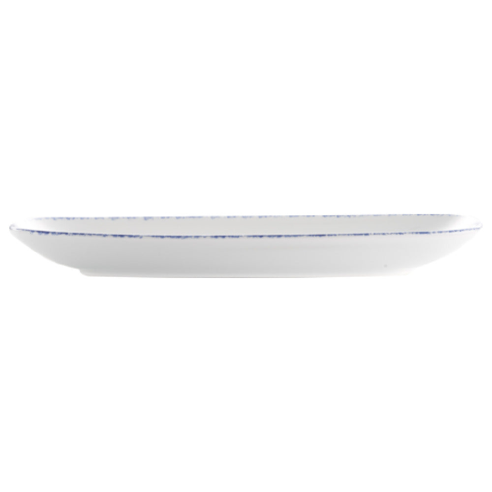 The International Tableware PR-13-CB Platter 11-5/8"L x 5-7/8"W Organic Rectangle is a meticulously crafted piece of tableware that combines elegance and functionality, making it an excellent choice for various dining establishments. This platter features a unique organic rectangle shape, providing a modern and sophisticated appearance that enhances the presentation of culinary creations. Measuring 11-5/8 inches in length and 5-7/8 inches in width, it offers ample space for a variety of dishes. Made from high-quality porcelain, this platter is adorned with an underglaze decoration in European White with a Blue accent, adding a touch of provincial charm to any dining setting. The porcelain material ensures durability and a smooth finish, making it ideal for frequent use in restaurants, cafes, and catering services. Packed by the dozen, this platter is a practical investment for businesses looking to maintain a consistent aesthetic across their table settings. The International Tableware PR-13-CB Platter stands out in the market for its combination of style, durability, and versatility, catering to the needs of different segments within the food service industry.
