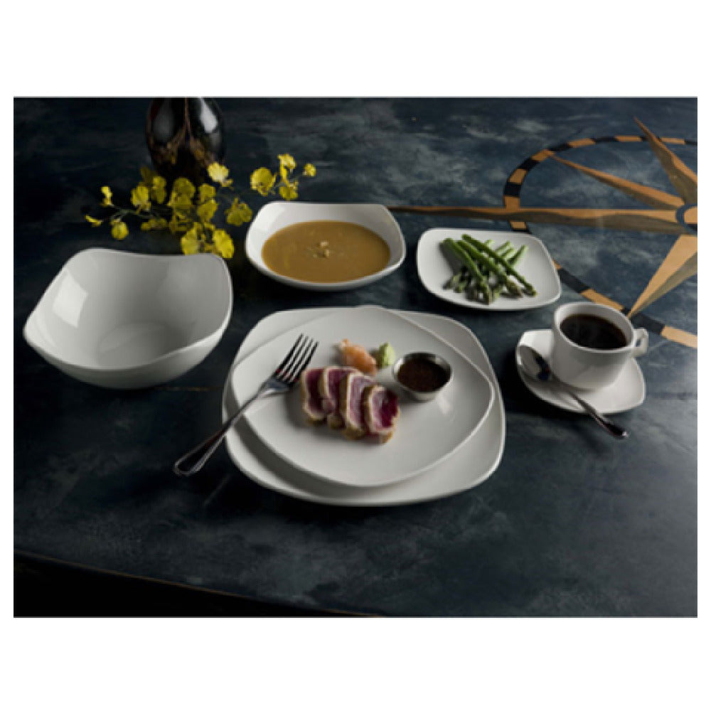 The International Tableware QP-11 Fruit Bowl is a versatile and practical choice for both professional and home use, featuring an 11 oz. capacity and dimensions of 5-1/4" x 5-1/4" x 2-1/8"H. Its square design is complemented by full vitrification, which enhances durability and ensures a long-lasting product life. This fruit bowl is microwave and dishwasher safe, offering convenience and ease of use in busy kitchen environments. Made from lead-free porcelain, it provides a safe and healthy option for serving a variety of dishes. The bowl is finished in a European White color, adding a touch of elegance and class to any table setting. The Quad™ design is packed by 3 dozen per case, making it an excellent bulk option for restaurants, catering businesses, and hospitality services. The precise construction and quality materials make this fruit bowl a reliable choice for any industry segment requiring durable, stylish tableware with practical functionalities.