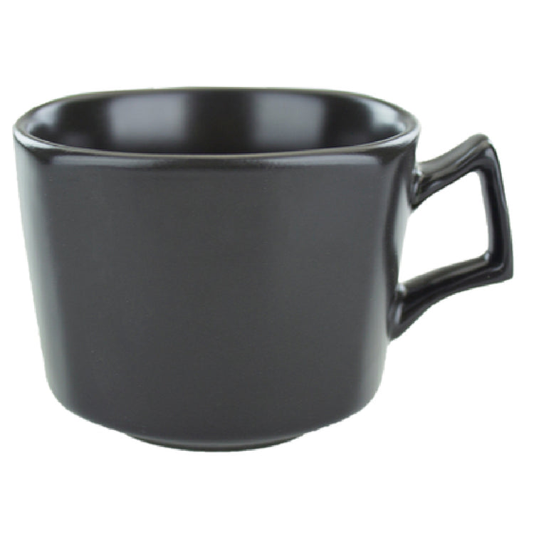 The International Tableware QP-23-MB Cup 8 Oz. 3-3/8" Dia. X 2-5/8"H is a meticulously crafted piece of porcelain dining ware that caters to both aesthetic appeal and functional utility. With an 8-ounce capacity, this cup is designed with dimensions of 3-3/8 inches in diameter and 2-5/8 inches in height, making it an ideal choice for serving a variety of beverages. Constructed from fully vitrified porcelain, this cup ensures durability while being lead-free, which adds a layer of safety for daily use. Its matte black finish brings a contemporary elegance to any dining setting, appealing to both modern and traditional tastes. The inclusion of a handle enhances its practicality, enabling ease of use in both home and commercial environments. Compatibility with microwave and dishwasher use underscores its convenience for busy settings, from bustling cafes to high-paced restaurants. The QP-23-MB Cup is part of the Quad™ collection, known for its versatility and quality. Packed by 3 dozen per case, it provides a cost-effective solution for large-scale operations within the hospitality industry, including restaurants, hotels, and catering services, where style and resilience are paramount. This cup stands as a testament to International Tableware's commitment to quality and innovation in tableware solutions.