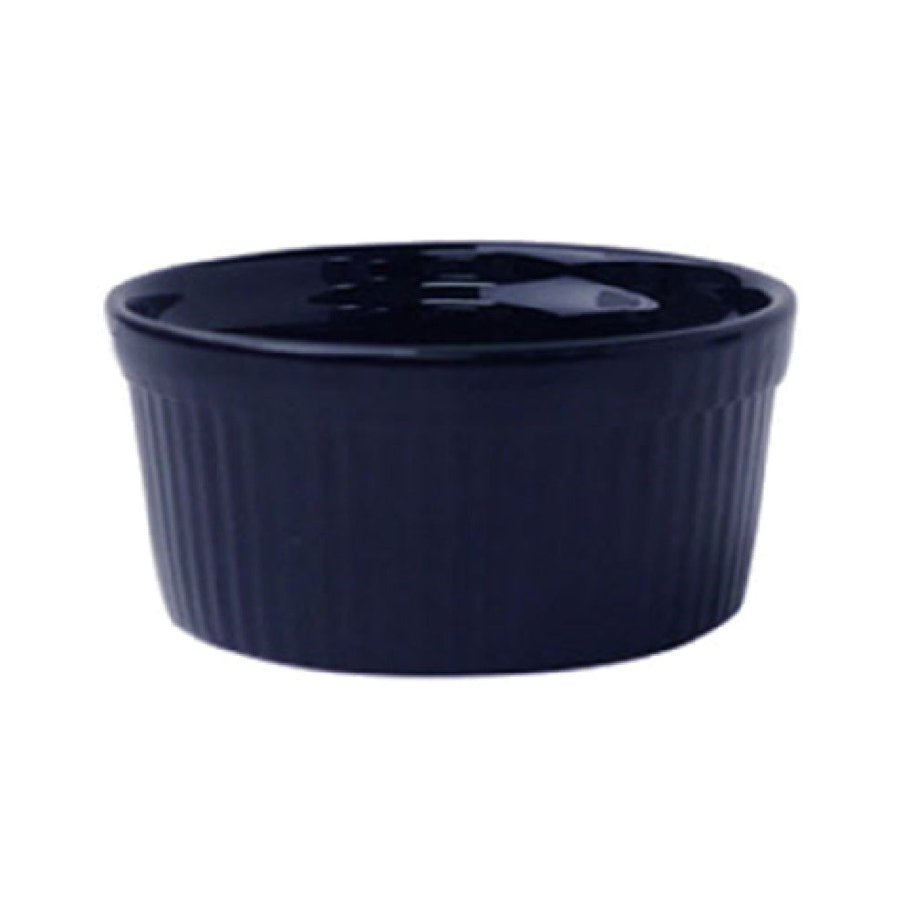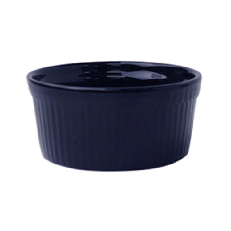 The International Tableware RAMF-2-CB Ramekin 2 Oz. 2-3/4" Dia. X 1-1/2"H is a ceramic ramekin designed for both functionality and aesthetics, featuring a cobalt blue Cancun™ finish that stands out in any dining setting. This round, fluted ramekin measures 2-3/4 inches in diameter and 1-1/2 inches in height, perfectly sized for serving sauces, dips, or small desserts. Its 2-ounce capacity is ideal for portion control, making it a versatile addition to restaurants and catering services alike. Constructed from lead-free ceramic, this ramekin ensures safety and durability, while being microwave and dishwasher safe for convenience in fast-paced environments. Packed in sets of three dozen per case, the RAMF-2-CB is an economical choice for establishments requiring bulk quantities. The combination of its elegant design and practical features makes it suitable for various markets, from high-end restaurants seeking to enhance their table presentation to casual eateries that need reliable and attractive dishware. Whether used in a professional kitchen or at home, the International Tableware RAMF-2-CB ramekin offers a blend of style and practicality that meets the demands of modern dining experiences.