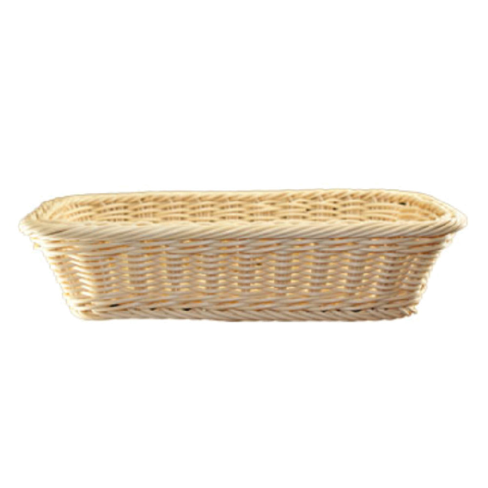 The International Tableware RB-211 Basket 13-3/4" x 7-1/2" x 3"H Rectangular is a versatile serving solution designed for diverse food service applications. With its dimensions measuring 13-3/4 inches in length, 7-1/2 inches in width, and 3 inches in height, it provides ample space for presenting a variety of foods, from breads to snacks. Crafted from durable rattan plastic, this basket combines the aesthetic appeal of natural rattan with the robustness of plastic, making it suitable for high-traffic environments like buffets and parties. Its cream color complements a wide range of table settings, adding a touch of elegance to the presentation. Specifically designed to fit the WR-152 model, it ensures compatibility within existing setups or as a standalone piece. This basket is sold packed by one each, ensuring convenience and simplicity in ordering, without the need for bulk purchases. The International Tableware RB-211 is an ideal choice for restaurants, hotels, and catering businesses looking to enhance their serving ware with a product that balances style and practicality. Its thoughtful design reflects a commitment to quality, ensuring reliable performance in various culinary contexts.