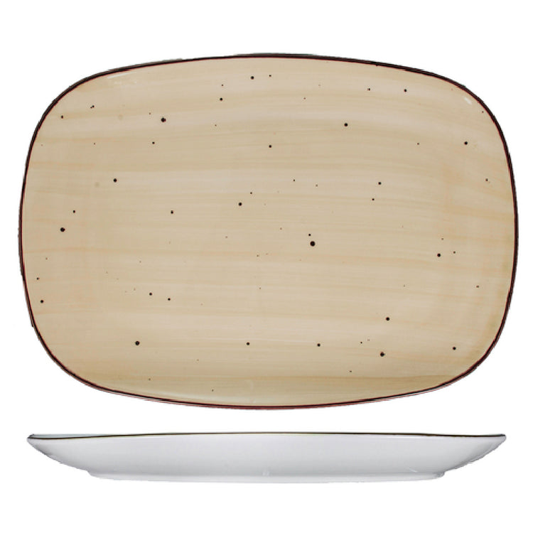 The International Tableware RT-12-WH Platter 12" X 9" Oblong is a distinctive piece of serveware designed to meet the demands of various dining establishments, from upscale restaurants to casual eateries. This platter, with its oblong shape measuring 12 inches by 9 inches, is crafted from high-quality ceramic, ensuring durability and a refined appearance that enhances presentation. Notably, the platter is lead-free, underscoring its safety and suitability for food service environments. Its wheat color, branded under Rotana™, provides a neutral yet elegant backdrop that complements a wide range of table settings. This platter is both microwave and dishwasher safe, offering practical convenience for busy kitchen operations by saving time on heating and cleaning processes. Packed in sets of one dozen, this product is ideal for establishments that require reliable, high-volume serveware. The International Tableware RT-12-WH Platter's combination of aesthetic appeal, safety features, and functional benefits makes it a versatile choice for those in the food and hospitality industry seeking to enhance their service capabilities while maintaining a commitment to quality and safety.
