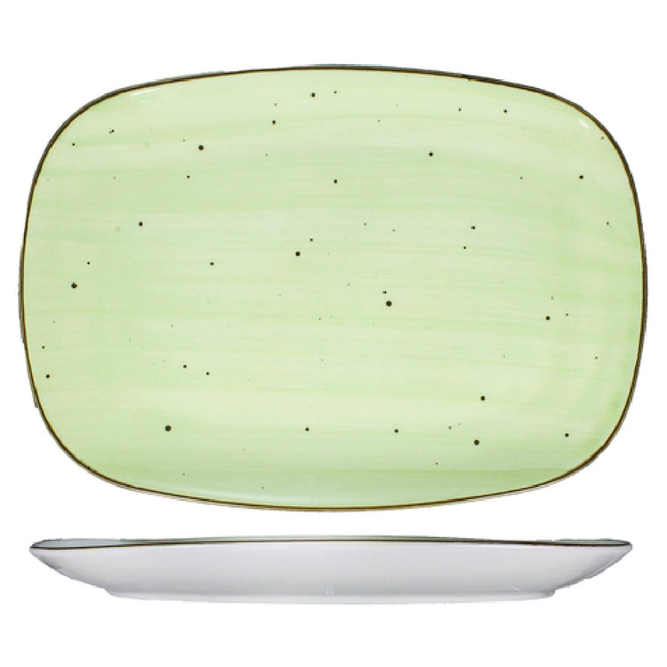 The International Tableware RT-14-LI Platter is a meticulously designed ceramic serving solution, measuring 14 x 9-1/2 inches in an oblong shape. Crafted with a focus on both functionality and aesthetics, this platter is microwave and dishwasher safe, representing a convenient choice for both home use and the food service industry. Its lead-free composition ensures safe and sustainable usage, aligning with contemporary health standards. The vibrant lime hue adds a splash of color to any table setting, making it a standout piece in the Rotana™ collection. Sold in cases of six, this platter is ideal for restaurants, catering services, or hospitality settings that require durable and stylish serveware. The combination of size, material, and vibrant color asserts its place as a versatile asset in diverse dining environments, catering to those who value both practicality and visual appeal in their serveware options. Its robust ceramic construction ensures longevity while maintaining a lightweight form for ease of handling. The International Tableware RT-14-LI Platter is an exemplary fusion of design and utility, suitable for varied culinary presentations, from casual dining to upscale events.