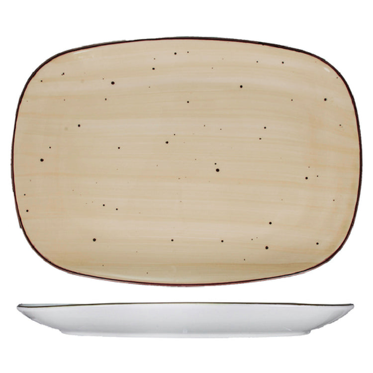 The International Tableware RT-14-WH Platter 14" X 9-1/2" Oblong is a meticulously crafted ceramic platter designed for versatile use across various segments of the food service industry. Measuring 14 inches by 9-1/2 inches, this oblong platter provides ample space for artful food presentation, making it a valuable asset for restaurants and catering services seeking to enhance their dining experiences. Its microwave-safe and dishwasher-safe features ensure convenience and efficiency, appealing to both commercial kitchens and home users who value ease of use and maintenance. Moreover, the platter is lead-free, emphasizing safety and health compliance, which is critical for establishments with stringent health standards. The RT-14-WH Platter is finished in a wheat color, offering a neutral yet elegant aesthetic that seamlessly integrates into diverse table settings. Part of the Rotana™ collection, each case contains six platters, making it an economical choice for large-scale operations or event planners requiring uniformity and consistency in presentation. Whether used for everyday meals or special occasions, this platter's blend of functionality, safety, and design ensures it meets the diverse needs of the food service industry. Packaged by Cs, the International Tableware RT-14-WH Platter stands out as a practical and stylish addition to any culinary environment.