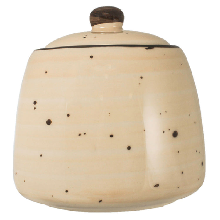The International Tableware RT-61-WH Sugar Container is a meticulously crafted piece designed for both functionality and aesthetics, measuring 3-1/2" in diameter and 3-1/4" in height. This round sugar container boasts an 8 oz. capacity, making it an ideal choice for both individual and commercial settings. Crafted from lead-free ceramic, it ensures the safety and purity of your sugar storage. The inclusion of a lid aids in maintaining freshness and preventing contamination, making it a practical addition to any kitchen or dining setup. Its microwave and dishwasher-safe nature offers convenience for everyday use, allowing for easy cleaning and reheating without concern for damage. The container's wheat color, part of the Rotana™ collection, complements a variety of table settings, blending seamlessly with both contemporary and traditional decor. Packaged by the dozen, this product is particularly beneficial for restaurants and cafes looking to maintain a cohesive aesthetic across their tableware. The International Tableware RT-61-WH Sugar Container is not only a functional storage solution but also a stylish accessory that caters to the needs of diverse market segments within the food service industry.