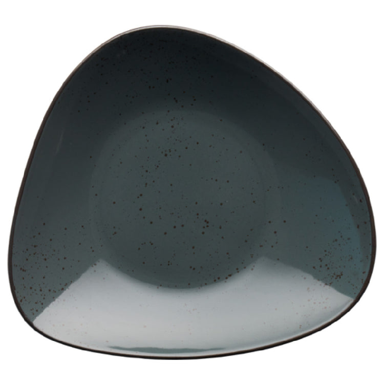 The International Tableware SH-120-LN Pasta/Salad Bowl, with its dimensions of 10-3/8" diameter by 1-1/2" height, provides a generous capacity of 32 oz., making it a versatile addition to any dining setting. Crafted in an Organic Triangle shape, this bowl stands out with its distinct aesthetic appeal. Made from stoneware that is fully vitrified, it ensures durability and resilience, which is ideal for both casual and formal dining environments. The hand-painted reactive glaze finish in Lunar Blue, accented with Dark Brown Trim and Speckles, adds a touch of artisanal flair to the presentation of pasta or salads. This unique color combination aligns perfectly with modern dining trends, enhancing the visual appeal of culinary creations. The bowl's robust construction and elegant design make it suitable for restaurants aiming to create a memorable dining experience, as well as for catering services that require both functionality and style. Packed by the dozen, it provides practicality and convenience for busy food service operations, ensuring that establishments can maintain consistency in their tableware presentation. The International Tableware SH-120-LN Pasta/Salad Bowl is a standout choice that combines form and function, catering to the diverse needs of the hospitality industry.