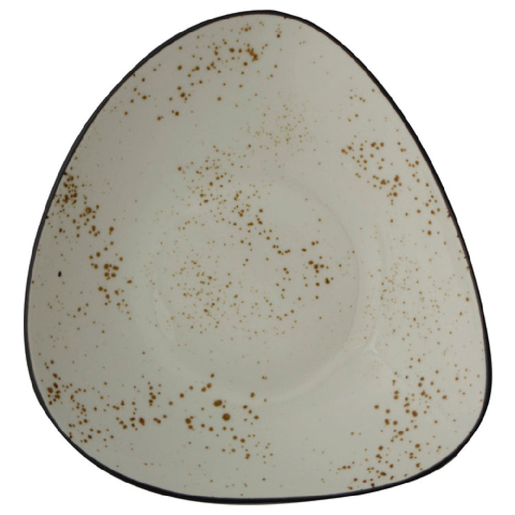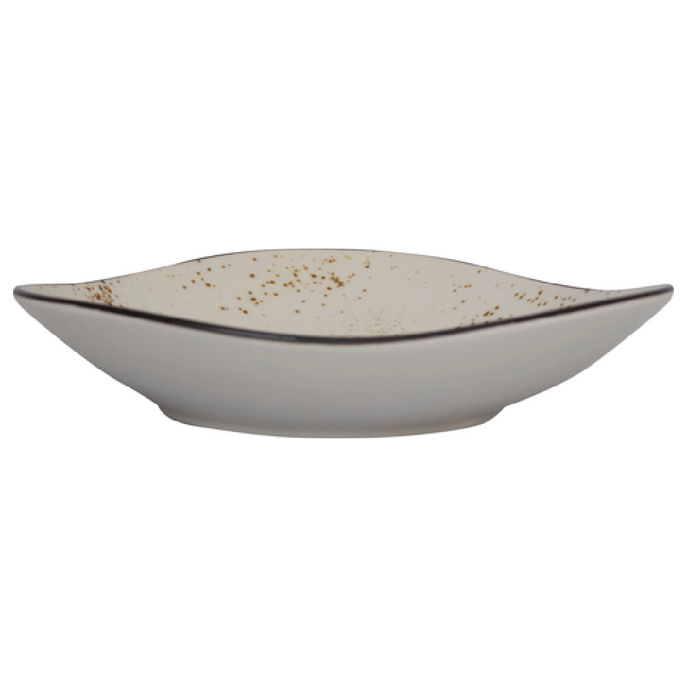 The International Tableware SH-3-CR Pasta/Salad Bowl Bowl is a distinctively designed piece of dinnerware, measuring 9-1/8 inches in diameter and 1-7/8 inches in height, with a capacity of 20 ounces. Crafted from stoneware, this bowl is fully vitrified, ensuring durability and resistance to chipping and cracking, making it suitable for both commercial and residential use. Its organic triangle shape, complemented by a hand-painted reactive glaze finish, adds an artistic touch to any dining setting. The bowl's crème color with dark brown trim and speckles provides a warm, rustic aesthetic that can enhance the presentation of pasta and salads. Sold in cases of two dozen, this bowl is ideal for restaurants, catering services, and hospitality businesses looking to add elegance to their table settings. The product’s design not only serves a functional purpose but also contributes to the overall dining experience by offering a unique and sophisticated appearance. The International Tableware SH-3-CR Pasta/Salad Bowl Bowl embodies the perfect blend of innovative design and practical functionality, catering to diverse needs in the food service industry.