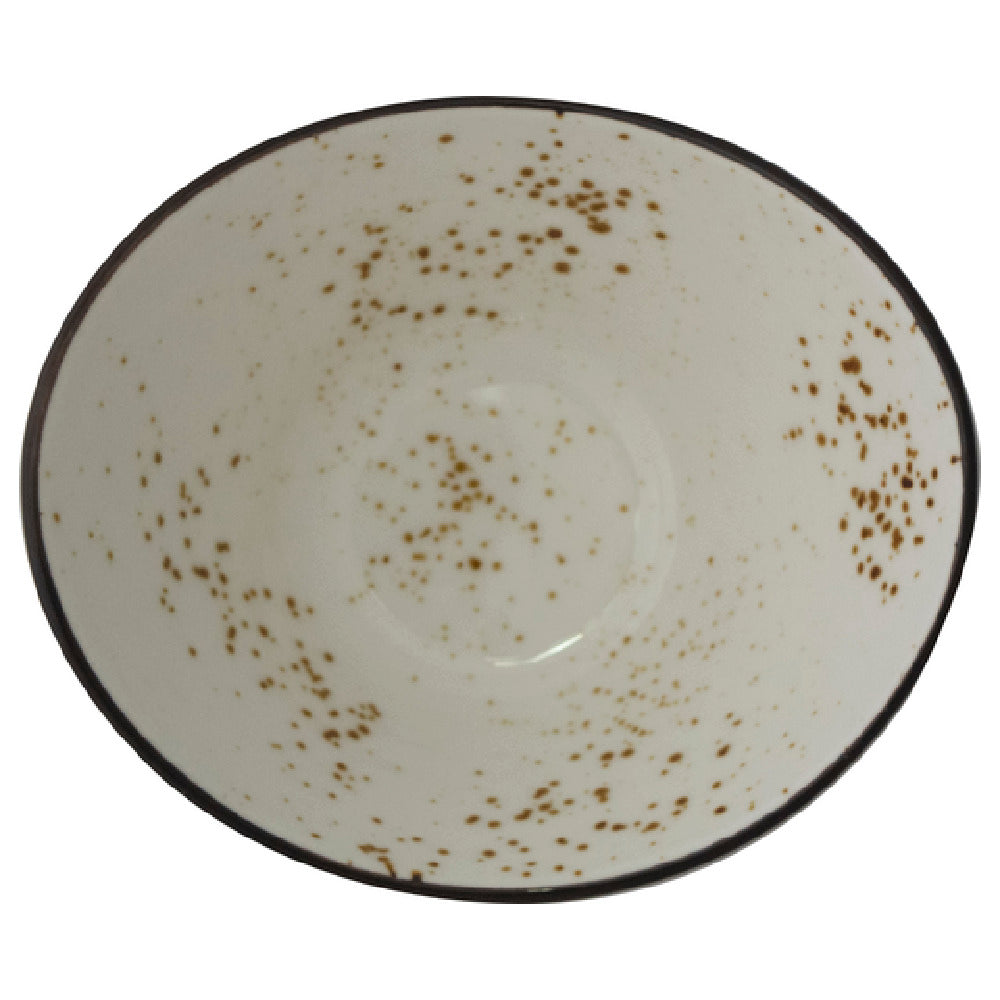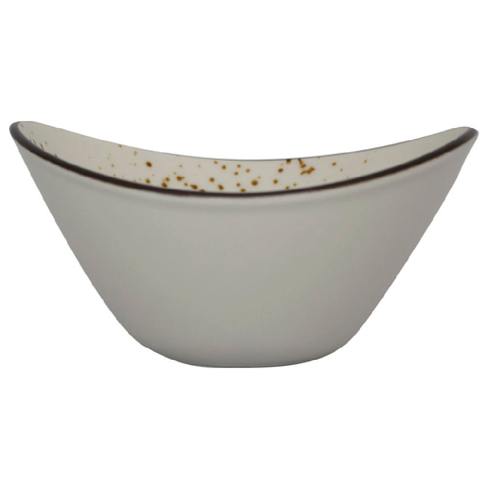 The International Tableware SH-910-CR Bowl is a meticulously crafted piece designed for versatile use across various dining settings. Measuring 5 inches in length, 4-3/8 inches in width, and 2-1/2 inches in height, this bowl holds a capacity of 7 ounces, making it suitable for serving small portions elegantly. Its oval shape contributes to its aesthetic appeal, while the stoneware construction ensures durability and a lasting presence in any tableware collection. Fully vitrified, this bowl is resistant to moisture absorption and boasts enhanced strength. A distinctive hand-painted reactive glaze finish adds a unique touch to each piece, showcasing a Crème base with dark brown trim and speckles for a sophisticated yet rustic look. This finish not only enhances the visual appeal but also speaks to the quality craftsmanship involved. The SH-910-CR Bowl is part of the Splash™ collection, and its packaging by 2 dozen per case makes it an efficient choice for restaurants, catering businesses, and event planners. Its practical design and artisanal finish make it a valuable addition to any dining experience, providing both functionality and style, which are crucial in the foodservice industry.