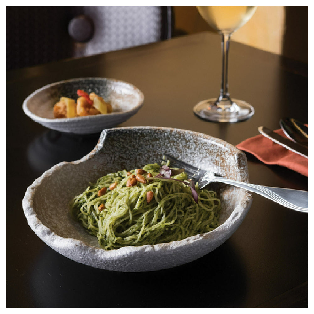 The International Tableware ST-43 Salad/Pasta Bowl 24 Oz. 8-1/4" Dia. is an expertly crafted dining essential, engineered for versatility in both residential and professional settings. With a capacity of 24 ounces and a diameter of 8-1/4 inches, this bowl accommodates generous servings, making it perfect for salads and pasta dishes alike. Its small, round design with a broken edge adds a touch of unique elegance to any table setting. Constructed from durable stoneware, it is part of the Stonehaven line, ensuring a lead-free and safe dining experience. This bowl is both microwave and dishwasher safe, offering convenience and ease of maintenance for busy kitchens. Packaged in sets of one dozen, it is suitable for bulk purchase by restaurants, hotels, and catering services, providing a cost-effective solution for high-volume dining operations. The International Tableware ST-43 Salad/Pasta Bowl is designed to withstand the demands of frequent use while maintaining its aesthetic appeal, making it a practical and stylish choice for a variety of dining environments.