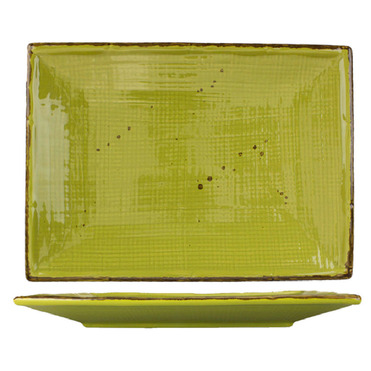 The International Tableware SV-108-BA Platter 10-3/4" x 7-3/4" Rectangular is a meticulously crafted piece of stoneware that blends functionality with aesthetic appeal. This platter is embossed and speckled, offering a unique texture and visual interest that enhances any dining presentation. Its rectangular shape, measuring 10-3/4 inches by 7-3/4 inches, is ideal for a variety of uses across the restaurant and hospitality industry. The platter features a rolled edge, providing durability and resistance to chipping, which is essential in high-traffic environments. Made from fully vitrified stoneware, it ensures a non-porous surface that is both microwave and dishwasher safe, meeting the demands of modern dining facilities. Furthermore, the platter is lead-free, prioritizing consumer safety. Finished in a delicate basil color, part of International Tableware's Savannah™ collection, it adds a touch of elegance to any table setting. Packed by the dozen, this platter is perfect for catering services, upscale dining, and everyday restaurant use, offering a balance of durability and design. Its combination of technical specifications and aesthetic choices makes it a valuable asset for various segment markets within the food service industry.