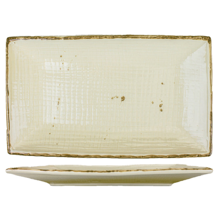 The International Tableware SV-127-KH Platter 12-1/4" x 7-3/8" Rectangular is an exemplary piece of tableware designed with precision and elegance. This platter is embossed and speckled, offering a unique aesthetic appeal that suits a variety of dining settings. With its dimensions of 12-1/4 inches by 7-3/8 inches, it provides ample space for presenting a range of culinary creations, making it a versatile choice for both casual and formal dining environments. The platter features a rolled edge, enhancing its durability and making it resistant to chipping over time. Constructed from fully vitrified stoneware, it is lead-free, ensuring safe food service operations. Its khaki color adds a neutral yet sophisticated touch to the table setting. This platter is designed to be both microwave and dishwasher safe, offering convenience for everyday use as well as in high-volume food service establishments. The International Tableware SV-127-KH Platter is part of the Savannah™ collection, packed by the dozen, providing a reliable choice for restaurants, catering businesses, and hospitality industries seeking quality and consistency in their tableware collections. Its combination of functionality and aesthetic appeal positions it as a valuable asset across various market segments within the food service industry.