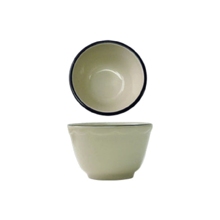 The International Tableware SY-4 Bouillon is a versatile ceramic dish with a capacity of 7-1/4 ounces, skillfully designed to meet diverse dining needs. Its dimensions include a 4-inch diameter and a height of 2-1/2 inches, providing ample space for serving bouillon, soups, and other liquid delicacies. The dish features a round shape with an elegant scalloped edge, adding a touch of sophistication to any table setting. This product is both microwave and dishwasher safe, offering convenience for busy kitchens and ensuring ease of cleaning and usage. Made from lead-free ceramic, it prioritizes safety and health standards, aligning with industry expectations. The SY-4 Bouillon is presented in an American White hue accented by a black band, creating a classic yet modern appearance suitable for a range of dining environments. Known as the Sydney™ line, this product is packed by 3 dozen per case, which is ideal for restaurants, catering services, and hospitality businesses looking to maintain uniformity in large quantities. The thoughtful combination of design and functionality makes the International Tableware SY-4 Bouillon a reliable choice for professionals seeking quality and elegance in their tableware collections.