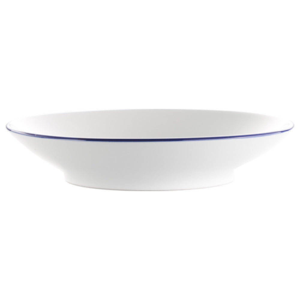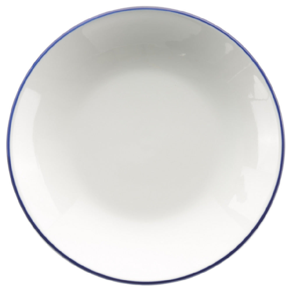 The International Tableware TB-108-CB Pasta Bowl is a meticulously crafted dining essential, boasting a volume of 22 oz. and dimensions of 8"D x 1-1/2"H. This round, European White bowl features a striking blue design, achieved through underglaze decoration, enhancing its aesthetic appeal. As part of the Torino-Bistro collection, it embodies a classic yet contemporary style suitable for diverse dining environments. Constructed from durable porcelain, this pasta bowl is designed to withstand everyday use in both residential and commercial settings. It is packed by the dozen, making it an ideal choice for restaurants, catering services, and hospitality venues seeking to maintain consistency in their table settings. The combination of its size, design, and material make this bowl a versatile choice for serving a variety of pasta dishes, salads, and more. Whether used in a bustling bistro or a refined dining room, the International Tableware TB-108-CB Pasta Bowl provides a blend of functionality and elegance, catering to the needs of different market segments within the food service industry. Its unique value lies in its ability to seamlessly integrate into various dining atmospheres while maintaining a high standard of quality and style.