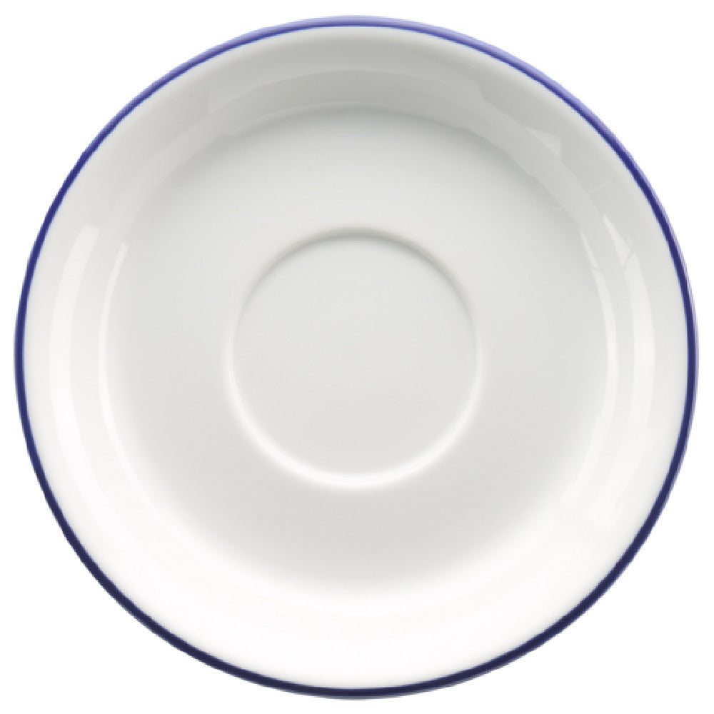 The International Tableware TB-2-CB Saucer 6-1/8"D Round is an elegantly designed piece that complements upscale dining experiences, providing a perfect fit for the TB-23-CB Stacking Cup. Crafted in European White with a striking blue accent, this saucer is made from premium porcelain and features underglaze decoration, ensuring both durability and style. Its 6-1/8 inch diameter makes it ideal for a variety of dining settings, from cafes to high-end restaurants, enhancing the presentation of beverages. The Torinoâ„¢ Bistro design adds a sophisticated touch, making it suitable for establishments aiming to create a classic European ambiance. Packed by 3 dozen per case, this saucer caters to large-scale operations, ensuring that businesses can accommodate high-volume usage seamlessly. Its compatibility with the stacking cup enhances space efficiency, a significant benefit for busy environments where storage optimization is crucial. The International Tableware TB-2-CB Saucer is an optimal choice for any segment within the hospitality industry that values quality, style, and functionality in their tableware selections, offering a timeless aesthetic that aligns with various dining tastes.