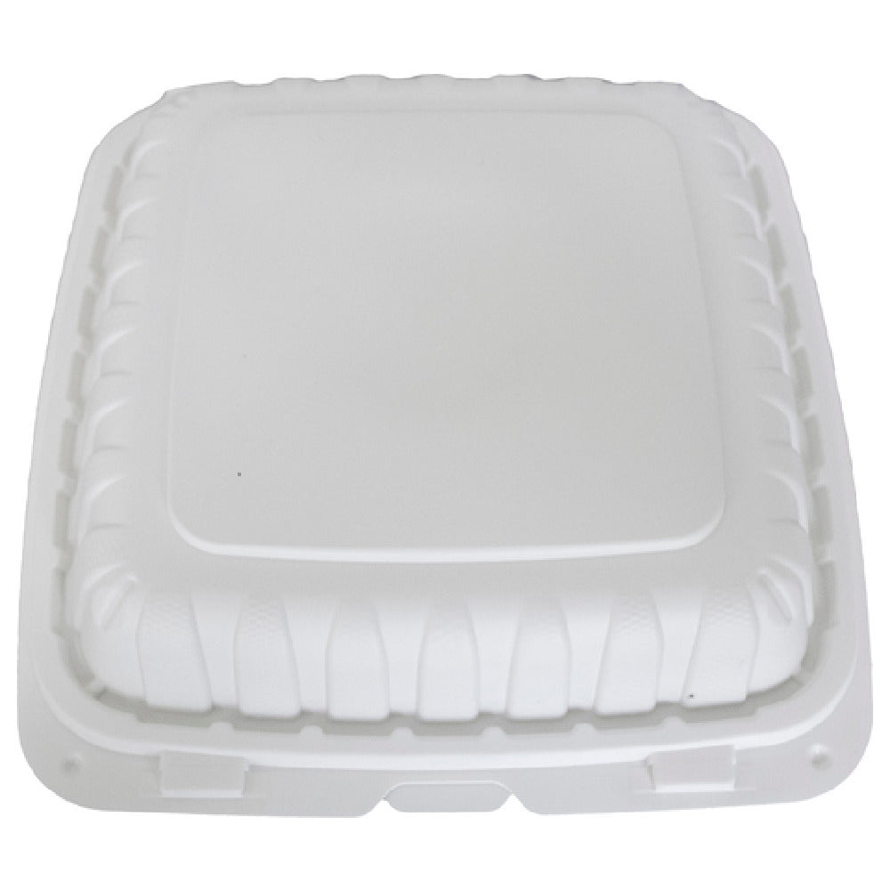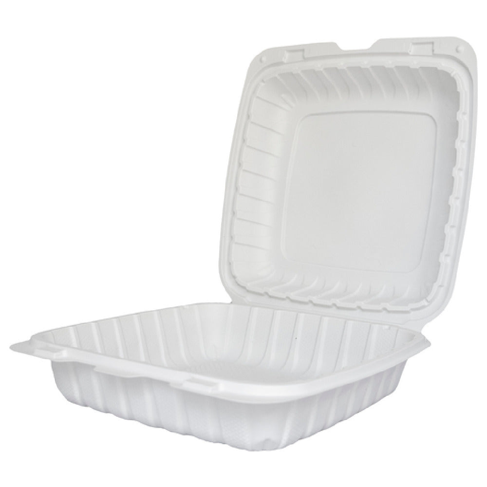 International Tableware TG-PM-99 Container Plastic White is a versatile product designed for various industry segments, including food service and catering. This item is a square, 9-inch by 9-inch by 3-inch container, featuring a hinged lid for secure closure. Made from durable plastic, this container is white and includes a single compartment, making it ideal for holding various types of food. It is microwavable, allowing for the convenient reheating of contents without the need for additional dishes. The dual bar locks ensure that the lid remains tightly sealed, preventing spills and maintaining the freshness of the food inside. Furthermore, the container is non-absorbent, which prevents it from soaking up moisture and odors, thereby maintaining the quality of the stored contents. Each case contains 150 units, with each container weighing 60 grams. The TG-PM-99 is a practical solution for restaurants, catering businesses, and other food service operations that require dependable and hygienic food storage and transport options. The emphasis on functionality and convenience makes this container a reliable choice for professionals seeking to enhance their service efficiency.
