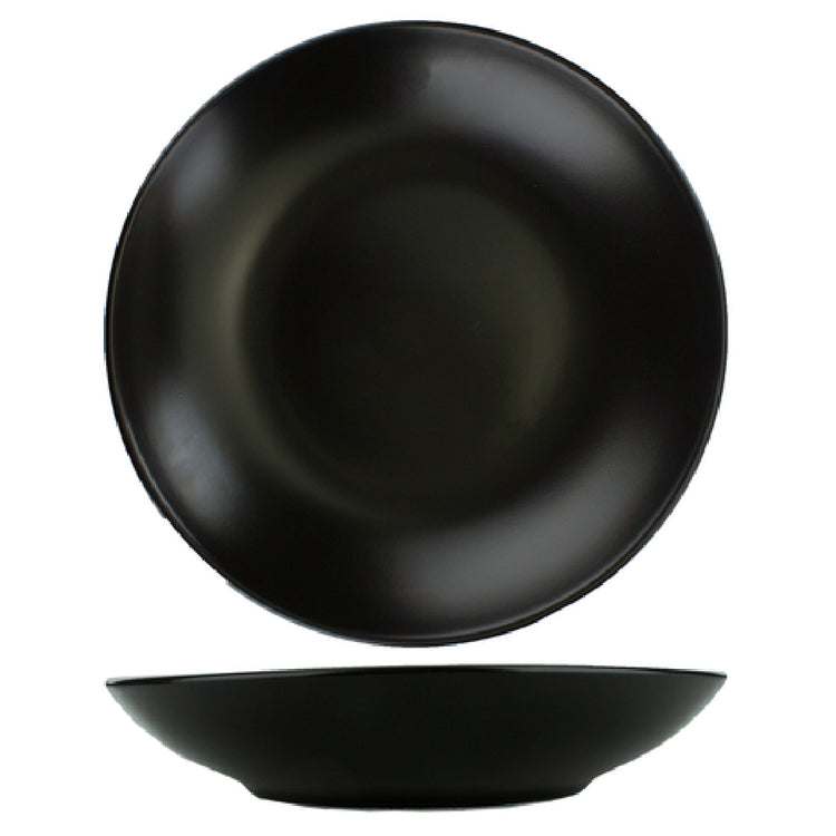 The International Tableware TN-110-MB Pasta Bowl is a versatile and practical addition to any dining setting, with a generous capacity of 40 oz. and a diameter of 10 inches. Standing at 1-7/8 inches high, this bowl offers ample space for a variety of pasta dishes, making it suitable for both personal and professional environments. The round, coupe design ensures a modern and sleek appearance, while the fully vitrified porcelain construction guarantees durability and resilience. Its matte black finish adds a sophisticated touch to any tableware collection, ideal for contemporary dining aesthetics. The bowl is microwave and dishwasher safe, offering convenience for both preparation and cleanup, and is lead-free, ensuring safety and compliance with health standards. The Torino™ collection, packed by the dozen, makes it an excellent choice for restaurants and catering businesses looking to maintain consistency and quality in their service. This pasta bowl combines functionality with style, making it a valuable asset for various market segments within the food service industry, from upscale restaurants to casual dining establishments. Its ability to withstand the demands of daily use while maintaining its elegant appearance highlights its unique value proposition in the tableware market.
