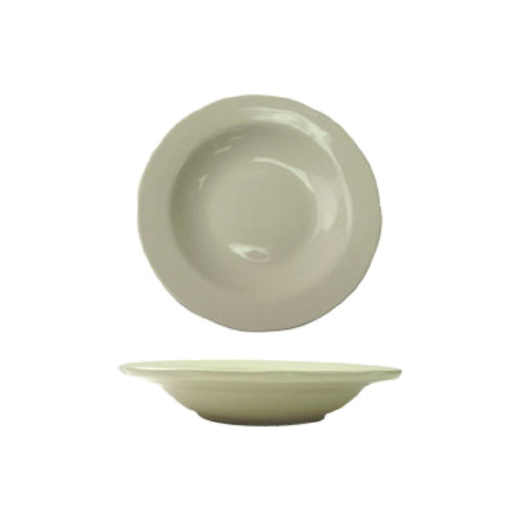The International Tableware VI-115 Pasta Bowl is a meticulously designed ceramic bowl with a capacity of 26 oz., making it ideal for serving generous portions of pasta or similar dishes. With a diameter of 11-1/4 inches and a height of 2-1/8 inches, this round bowl combines functionality with style. The scalloped edge adds a touch of elegance, enhancing the dining experience in any setting. Crafted in American White, the bowl is lead-free, ensuring safety and peace of mind for users. Its robust construction allows it to be both microwave and dishwasher safe, providing convenience in fast-paced environments such as restaurants and hotels. The bowl is part of the Victoria™ line, known for its durability and classic design. Packed by the dozen, the VI-115 Pasta Bowl is not only cost-effective for bulk purchases but also an excellent choice for catering services that demand consistency in presentation and quality. Its versatile features make it suitable for diverse markets within the food service industry, from upscale dining establishments to casual eateries, ensuring that it meets the varied needs of different clientele while maintaining a high standard of performance and aesthetic appeal.