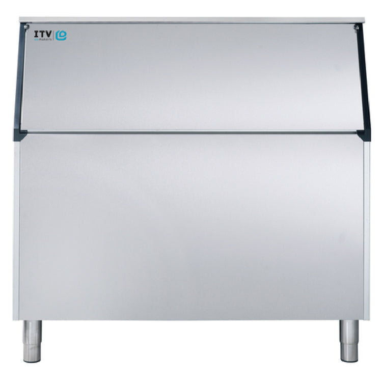ITV Ice Makers, S-900, Ice Storage Bin, 48" W, 858 lbs. storage capacity, slope front bin, 304 stainless steel construction front & side, galvanized back & bottom, 6" adjustable legs (not included on dimensions), NSF