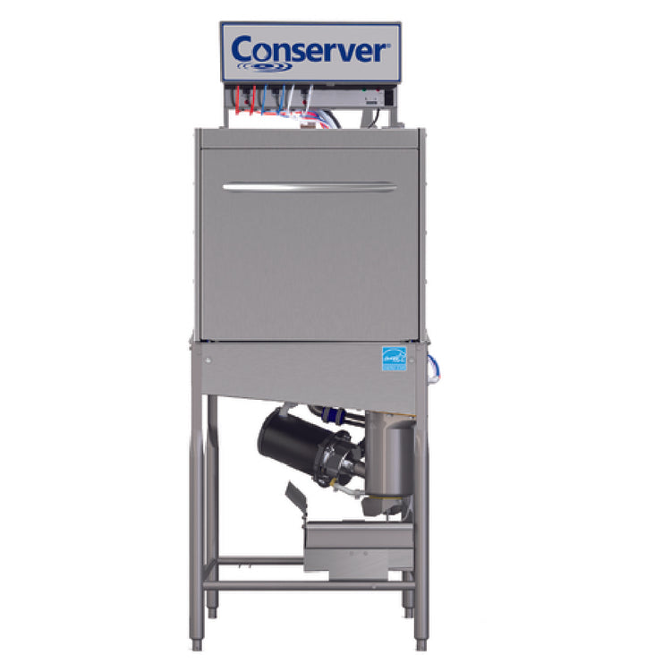 The Jackson CONSERVER XL-E-FL Conserver® Dishwasher Front Loading Door Type is a high-efficiency dishwashing solution measuring 25-1/4"W x 30-5/16"D x 68-1/2"H, specifically designed for optimal space utilization in professional kitchens. This low temperature chemical sanitizing dishwasher is capable of processing approximately 30 racks per hour, making it ideal for high-demand environments. Key technical features include an electronic timer for precise operation control, three built-in dispensing pumps for efficient chemical management, and a built-in scrap accumulator with a removable screen to facilitate easy cleaning and maintenance. The unit's auto-start functionality enhances operational efficiency, while the 1 HP wash pump ensures powerful cleaning performance. Constructed from durable stainless steel, this dishwasher boasts 3" adjustable stainless steel bullet feet for stability and adaptability to various kitchen layouts. The Jackson CONSERVER XL-E-FL is cETLus and ETL Sanitation certified, reflecting its compliance with rigorous safety and sanitation standards, and it holds an ENERGY STAR® rating, underscoring its energy-efficient design. This dishwasher is an exceptional choice for restaurants, catering services, and other food service operations seeking a reliable, efficient, and space-conscious dishwashing solution.