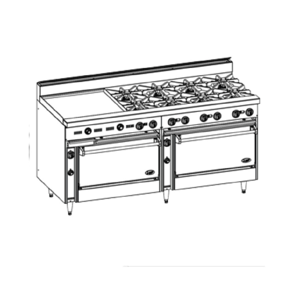 - 72" gas range with a 390,000 BTU output
