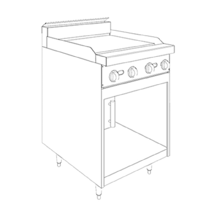 The Jade Range JBR-24G_NAT Bistro™ Restaurant Range - gas, 24" is a high-performance kitchen appliance designed for the demanding environments of commercial kitchens. This compact yet powerful range features a griddle with a 1" thick polished steel plate, ensuring durability and efficient heat distribution for various cooking techniques. The manual controls of the JBR-24G_NAT provide precise management over the cooking process, although it does not include a temperature thermostat. This model boasts a cabinet base, offering essential storage space for kitchen necessities. Aesthetically, the range is constructed with a stainless steel front, sides, tray bed, and stub back, which contributes to both its professional appearance and ease of cleaning. The unit stands on 6" adjustable legs, allowing for customization to fit any workspace. It operates with an impressive energy output of 48,000 BTU, ensuring powerful performance in busy kitchen settings. Certified by CSAus and NSF, the Jade Range JBR-24G_NAT meets rigorous industry standards for safety and cleanliness, making it a reliable choice for various segments within the food service industry, from small bistros to bustling restaurants requiring durable, space-efficient equipment.