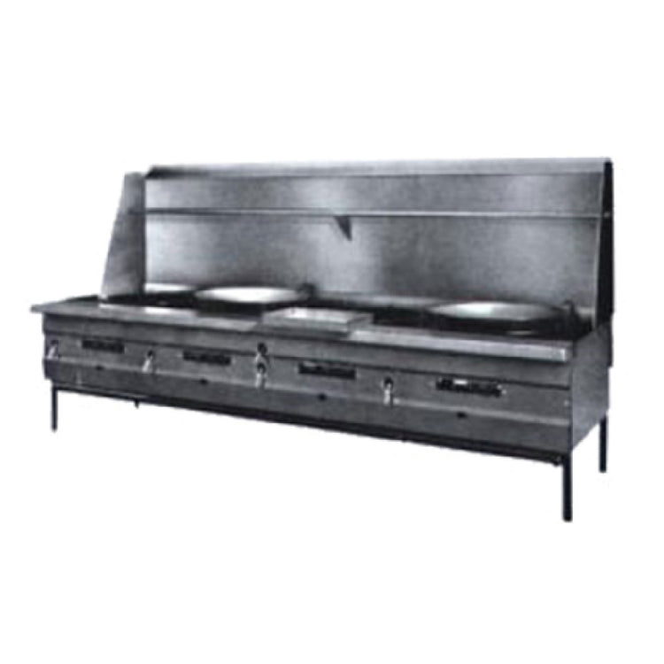 Jade Range (Middleby), JCR-1_NAT, Titan™ Heavy Duty Chinese Range, gas, (1) hole, (1) knee valve per jet burner or (3) independent valves for three ring burner, top cooling water flow with control valve, backsplash with tubular rack, (1) wok bowl and lid per hole, (1) 12" x 20" spice tray, drip trays, standard rear trough with perforated basket, 120" maximum single unit length, stainless steel front, sides, interior angle structuring, plate shelf, drip pan, top, & pipe legs, adjustable feet, CSAus, NSF
