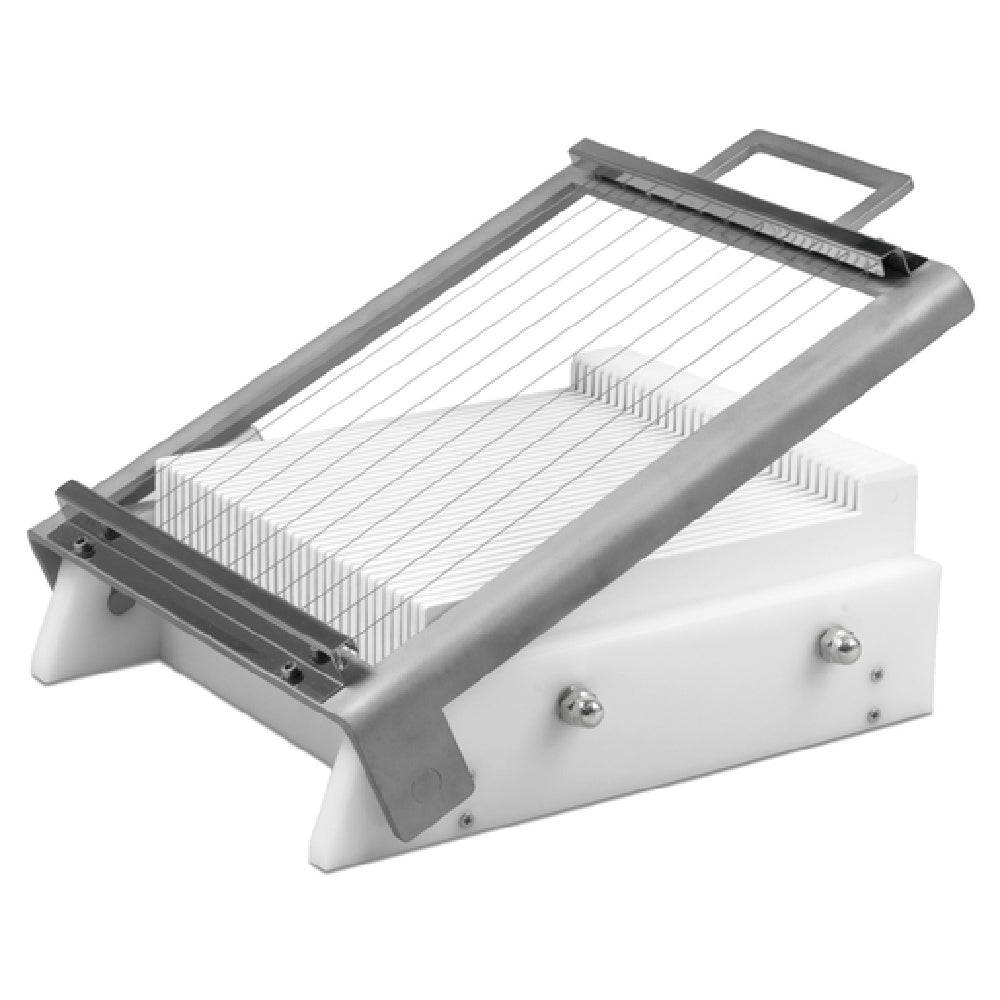 The JB Prince B102 Martellato Confectionery Cutter is a specialized tool measuring 10" x 11" overall, designed to enhance the efficiency and precision of confectionery preparation. This cutting frame, with a 22mm specification, is constructed from stainless steel, ensuring durability and reliability for professional pastry chefs and confectionery artisans. Included with the cutter is one plastic scraper and one stainless steel plate, which complement the cutting frame to facilitate clean and precise cuts of various shapes. Its compatibility with model# B101 further adds to its versatility, making it an ideal addition for those who already utilize JB Prince products. The stainless steel construction provides a streamlined, white finish that is not only sleek but also easy to maintain. This confectionery cutter is perfect for use in professional kitchens, bakeries, and pastry shops, where consistency and quality in confectionery production are paramount. Its thoughtfully designed components ensure it meets the high standards required by culinary professionals, offering a straightforward yet effective solution for cutting tasks within the confectionery industry.