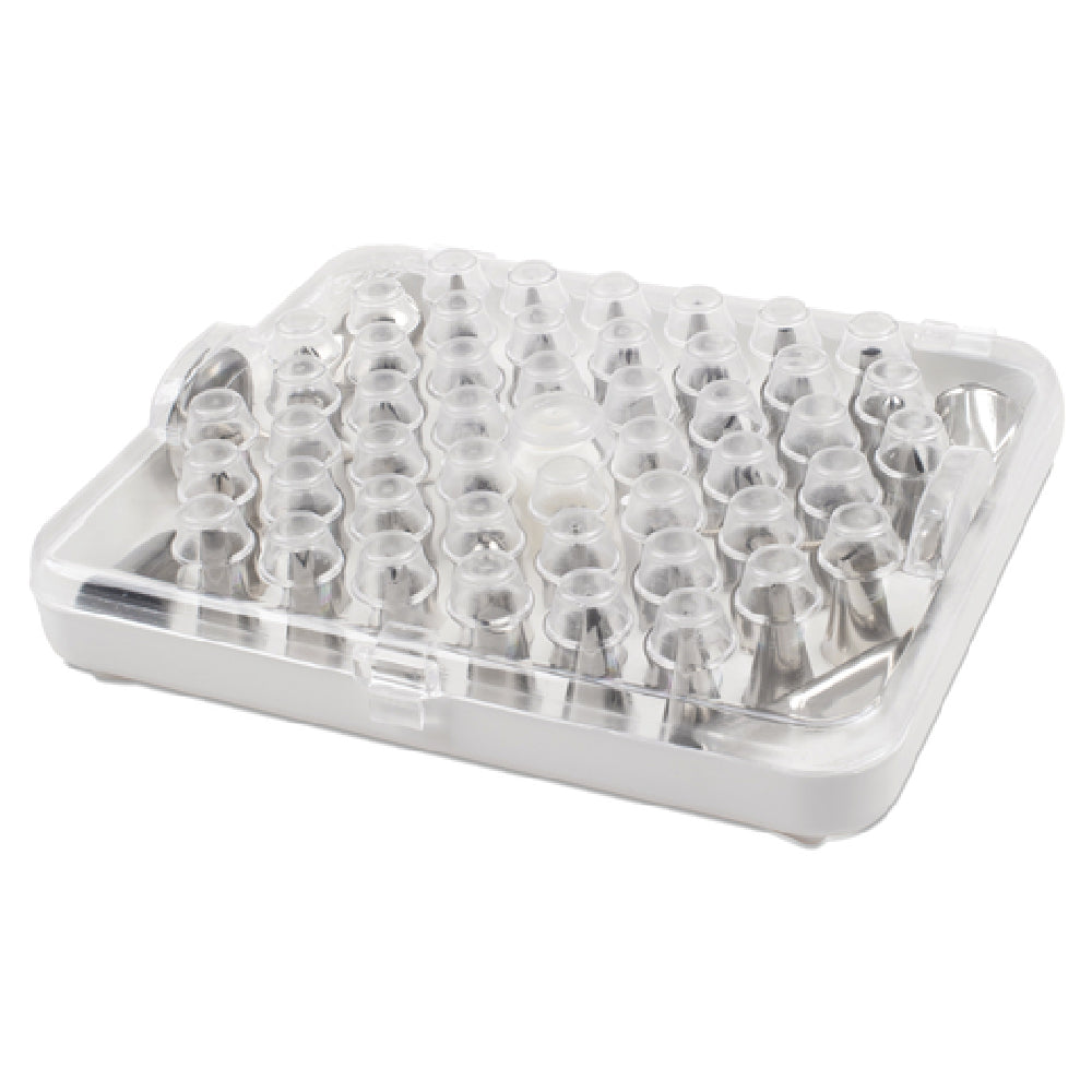 JB Prince B603 A Pastry Tip Set Includes: (1) Plastic Storage Box (51) Assorted Tubes - 1/Set