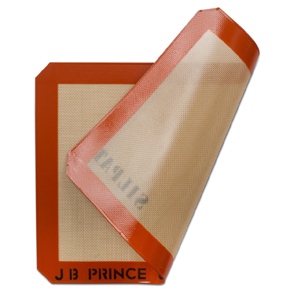 The JB Prince B706 Demarle Silpat Baking Mat half-size 16-1/2" x 11-3/4" is a versatile and essential tool for both amateur and professional bakers. Crafted from high-quality silicone, this baking mat is designed to handle a wide temperature range, being heat resistant from -40 to over 500°F. Its non-stick surface ensures effortless release of baked goods, eliminating the need for parchment paper or grease, and promoting healthier baking practices. The mat's brown and orange design is not only visually appealing but also highlights its unique qualities. Its reusability makes it an eco-friendly option, contributing to reduced waste in kitchen environments. This baking mat is ideal for a variety of culinary applications, from baking cookies and pastries to roasting vegetables and meats. Its half-size dimensions of 16-1/2" x 11-3/4" are perfect for standard ovens, making it a practical choice for both home kitchens and commercial baking settings. The JB Prince B706 Demarle Silpat Baking Mat stands out for its durability, ease of use, and compatibility with a wide range of recipes, making it a must-have for chefs and bakers looking to enhance their baking performance with reliable and efficient tools.