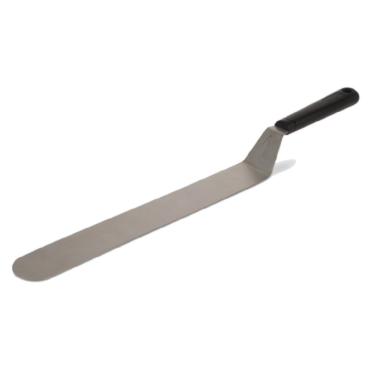 The JB Prince B906 29 Deglon Spatula 11-1/2"L Offset is a versatile and essential tool tailored for culinary professionals seeking precision and ease in the kitchen. With an 11-1/2 inch length, this spatula is designed to manage a variety of cooking tasks with enhanced flexibility. The offset design is a standout feature, providing an ergonomic angle that allows chefs to navigate tight spaces with finesse and maintain control during intricate cooking processes. Constructed from high-quality stainless steel, this spatula ensures durability and resistance to rust or corrosion, making it a long-lasting addition to any kitchen toolkit. The flexibility of the blade allows for precise handling and maneuvering, ideal for delicate tasks such as flipping fish or spreading even layers of icing. Complemented by a black plastic handle, the spatula offers a comfortable grip that withstands the demands of a busy kitchen environment. This product's thoughtful design caters to different market segments within the culinary industry, from professional chefs in bustling restaurants to passionate home cooks striving for professional-grade results. The JB Prince B906 29 Deglon Spatula is an indispensable tool that delivers precision and reliability through its carefully engineered features and durable construction.