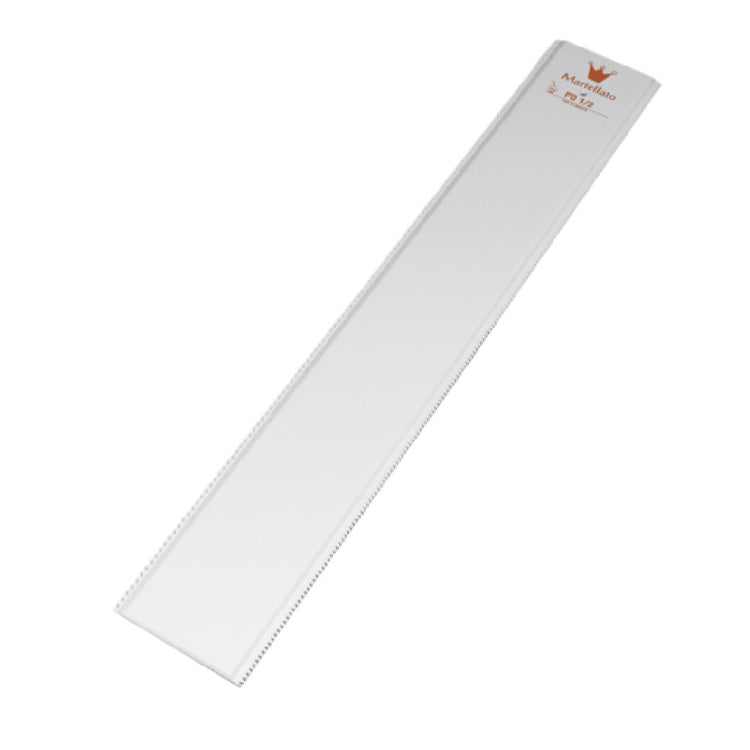 The JB Prince B931 Martellato Decorating Comb stands out as a versatile tool in professional kitchens and patisseries, designed with a length of 28 inches overall to accommodate a wide range of decorative applications. This dual-sided comb features small grooves, allowing chefs and bakers to create intricate patterns and textures on various culinary creations. Constructed from durable white plastic, it offers both resilience and ease of cleaning, crucial for maintaining hygiene standards in food preparation environments. This decorating comb is ideal for pastry chefs, cake decorators, and culinary artists seeking to enhance their presentations with precision and style. The two-sided design provides flexibility, enabling users to achieve different decorative effects without the need for multiple tools. Its lightweight nature ensures ease of handling, making it a practical choice for prolonged use in busy kitchen settings. The JB Prince B931 Martellato Decorating Comb is a reliable asset for any professional looking to elevate their craft with detailed and consistent decorative touches.