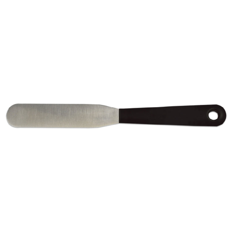 The JB Prince B991 Deglon Spatula is a high-quality kitchen tool featuring a 4-1/2" blade and an overall length of 8-1/2". This spatula is crafted from durable stainless steel, ensuring it can withstand the rigors of professional kitchens. Its flexible design allows for precision and ease when handling delicate tasks, making it an essential tool for chefs who value accuracy and control. The spatula's black plastic handle provides a comfortable grip, reducing hand fatigue during extended use. This versatile tool is ideal for various culinary applications, from flipping delicate fish fillets to spreading smooth layers of icing on cakes. It serves different segment markets, including pastry chefs requiring finesse in their creations, line cooks in bustling restaurant settings, or culinary students honing their skills. The JB Prince B991 Deglon Spatula's blend of flexibility, durability, and ergonomic design makes it a valuable addition to any kitchen, offering both professional chefs and home cooks a reliable tool for achieving exceptional results.