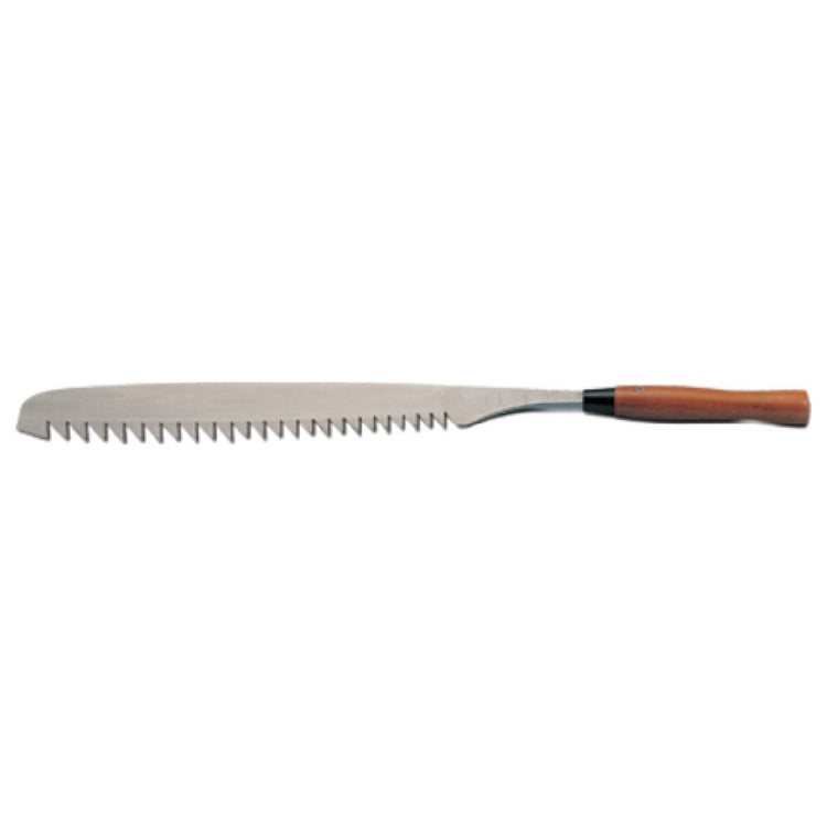 The JB Prince C412 A Ice Carving Saw is a precision tool designed for professional ice sculptors and culinary artists. With an impressive 28-inch overall length and a 17-inch blade, this saw is engineered for efficiency and ease of use in ice carving. The large, stainless steel blade ensures durability and resistance to corrosion, essential for maintaining a sharp edge and reliable performance over time. Its robust construction is complemented by a hardwood handle, offering a comfortable grip and control during intricate carving tasks. The craftsmanship of the JB Prince C412 A is underscored by its Japanese manufacturing, a testament to its high-quality engineering and attention to detail. This ice carving saw is a valuable asset for segments within the culinary industry that demand precision and reliability, from ice sculptors creating elaborate displays to chefs requiring exact cuts for presentation. Its technical specifications and thoughtful design make it an essential tool for those who need to deliver aesthetic excellence and efficiency in their ice carving projects.