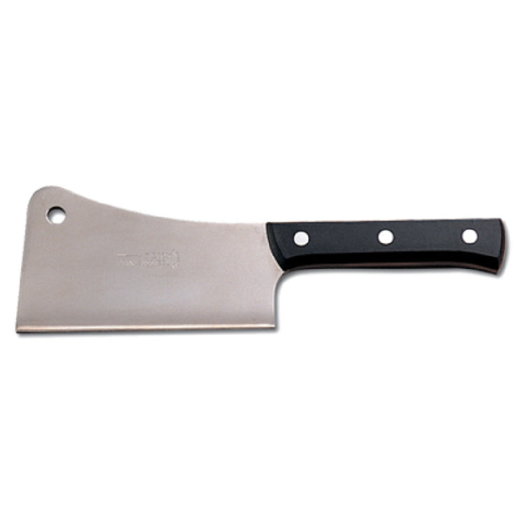 The JB Prince D923 F. Dick Cleaver 7" Stainless Steel is a meticulously crafted kitchen tool designed for precision and durability in professional culinary environments. Featuring a 7-inch blade made from high-quality stainless steel, this cleaver is engineered for both resilience and sharpness, catering to the rigorous demands of commercial kitchens. The blade's stainless steel composition ensures longevity and resistance to corrosion, making it an essential instrument for chefs who require a reliable cutting tool. Equipped with a polypropylene handle, the cleaver provides a secure and comfortable grip, reducing hand fatigue during extensive use. The handle's black color adds a sleek, professional aesthetic, complementing any kitchen setting. The JB Prince D923 F. Dick Cleaver is not only a versatile tool for tasks such as chopping and slicing but also a statement of craftsmanship, combining functional design with robust performance. This product is suited for diverse market segments within the culinary industry, from high-end restaurants to catering services, where precision and efficiency are paramount. With its combination of durable materials and ergonomic design, the JB Prince D923 F. Dick Cleaver 7" Stainless Steel stands as a valuable addition to any chef's arsenal, ensuring excellence in food preparation.