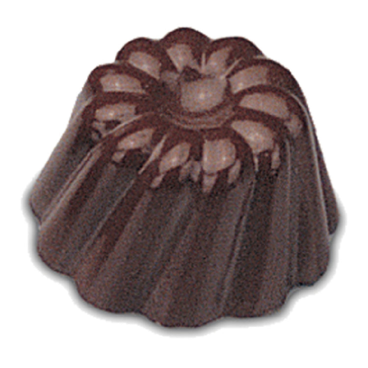 The JB Prince K200 Chocolate Mold is a precision-engineered tool designed for creating uniform and intricate chocolate forms, measuring 11"W x 7"D overall. Each cavity within the mold is meticulously crafted to produce kugelhofs with a diameter of 1-3/16 inches and a height of 11/16 inches, equivalent to 30mm in diameter and 18mm in height. This mold is crafted from rigid polycarbonate, ensuring durability and a high-quality finish to each chocolate form. The opaque nature of the material facilitates even coverage, critical to achieving professional-grade confectionery results. With a total of 35 kugelhof cavities, this mold is ideal for professional chocolatiers and patisseries, providing significant output for high-demand environments. The JB Prince K200 Chocolate Mold's robust construction and precise dimensions make it an indispensable tool for those in the culinary industry seeking consistency and perfection in every batch. Its technical specifications cater to a wide array of professional settings, from artisanal chocolate shops to large-scale commercial production facilities, where precision and quality are paramount. This mold stands out as a reliable and essential resource for creating exquisite chocolate pieces that meet the highest standards of confectionery art.