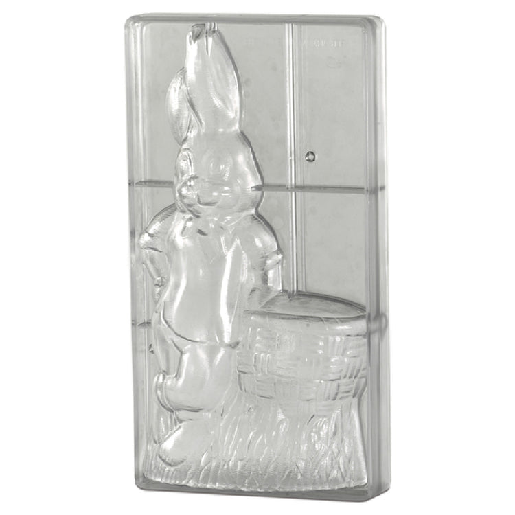 JB Prince K830 Chocolate Mold Single Form 13-1/2"H is a meticulously designed tool tailored for the confectionery industry, particularly valued for its size and intricate design capabilities. Standing at an impressive height of 13-1/2 inches, this mold captures the whimsical charm of a rabbit with a basket, making it ideal for creating festive, eye-catching chocolate figures. Constructed from rigid polycarbonate, the mold ensures durability and precision, allowing for consistent and intricate detailing with each use. Its opaque nature aids in the efficient cooling and setting of chocolate, crucial for maintaining the desired shape and quality of the finished product. The single form aspect of this mold streamlines the production process, making it a suitable investment for both artisanal chocolatiers and large-scale manufacturers seeking to enhance their product lines with unique, high-quality chocolate figures. Whether used in boutique chocolate shops or industrial production facilities, the JB Prince K830 Chocolate Mold provides a reliable, professional-grade solution for crafting beautifully detailed chocolate creations, embodying both functionality and aesthetic appeal.