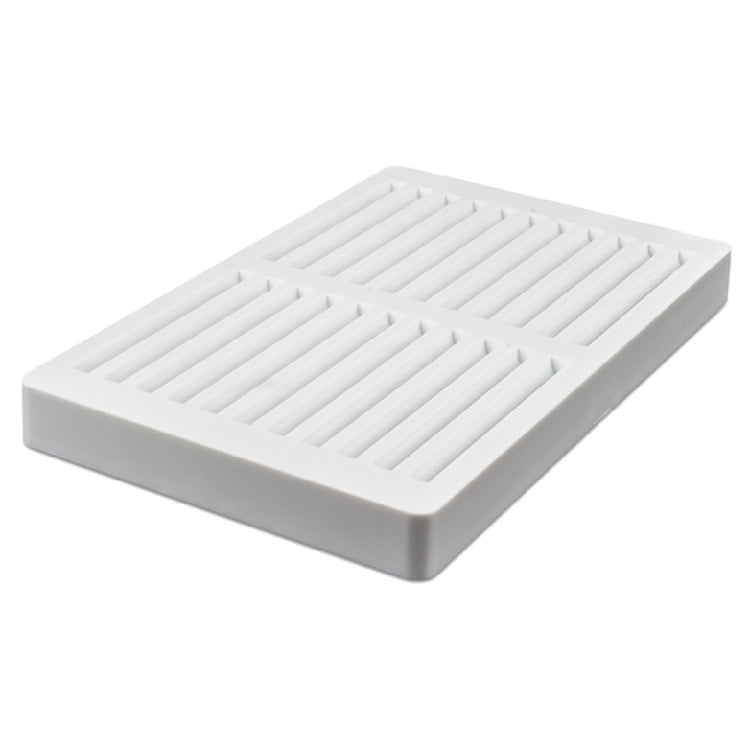The JB Prince K925 Chocolate Ornamental Mold is a specialized tool designed for creating precise chocolate decorations, measuring 4-5/16 inches in length and 1/4 inch in width. Crafted from rigid white polycarbonate, this mold is engineered to provide consistent results for professional chocolatiers and pastry chefs. Its durable construction ensures longevity and reliability, making it an essential addition to any confectionery production line. The mold's dimensions allow for the production of uniform chocolate sticks that can enhance the presentation of desserts and confections. The use of polycarbonate material not only contributes to its rigidity but also facilitates easy demolding, ensuring that each chocolate stick retains a smooth finish. This product is particularly valuable for high-volume chocolatiers who require precision and efficiency in their creative processes, as well as for small artisanal shops looking to elevate their product offerings with intricate decorative elements. The JB Prince K925 mold is tailored to meet the demanding standards of the confectionery industry, providing a versatile solution for creating decorative chocolate sticks that can be used in various culinary applications.