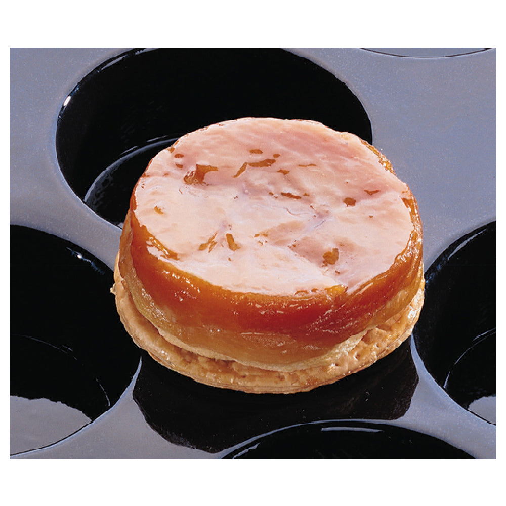 JB Prince M371 G Demarle Flexipan® Mold 23"L x 15"W (12) Tarte Tatin is a high-performance baking solution designed for culinary professionals seeking precision and versatility. This mold, measuring 23 inches in length and 15 inches in width, is engineered to accommodate twelve tarte tatins simultaneously, each with a diameter of 4 inches and a height of 1-3/8 inches. With an impressive capacity of 8-5/16 ounces per mold, it is ideal for crafting perfectly sized desserts. The mold's non-stick, flexible silicone construction ensures effortless release and exceptional durability, making it a reliable tool in fast-paced kitchen environments. Its wide temperature range, from -40°F to 536°F, offers unmatched adaptability, allowing chefs to use it in both freezing and high-heat baking applications. The black color of the mold adds a stylish touch while facilitating heat absorption for even cooking. Certified by NSF, this mold meets rigorous public health and safety standards. Whether used in upscale patisseries or industrial baking facilities, the JB Prince M371 G Demarle Flexipan® Mold provides unparalleled performance and reliability, making it a valuable asset for professionals aiming to elevate their culinary creations with precision and ease.