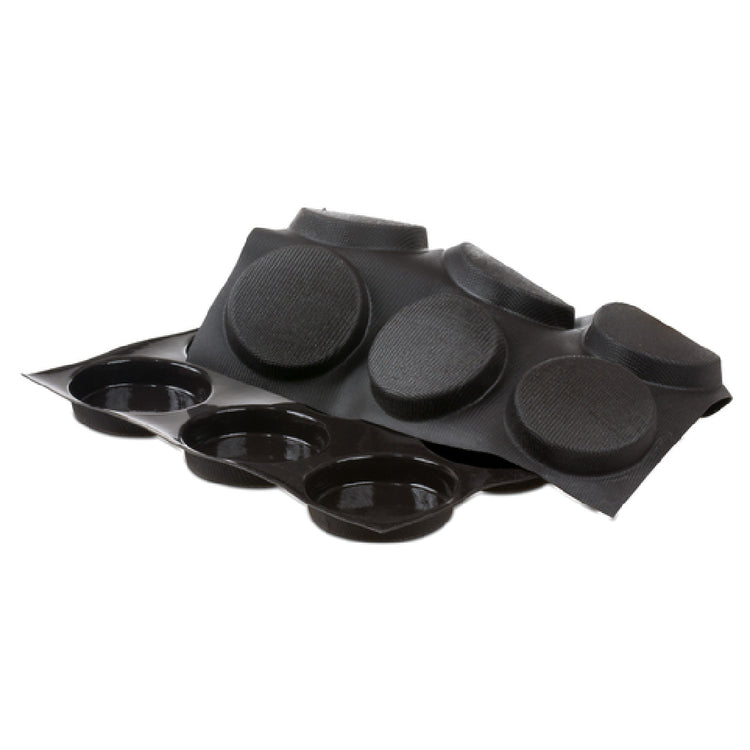 The JB Prince M372 B Demarle Flexipan® Mold 23"L x 15"W (15) Shallow Cake is a high-quality baking mold designed for professional kitchens that require precision and durability. Constructed from flexible, non-stick silicone, this black mold allows for easy release of baked goods and minimal cleanup. Each of the 15 shallow cake cavities measures 4" in diameter and 3/4" in height, with a capacity of 4-3/4 ounces, making it ideal for producing uniformly sized cakes. The mold excels in a wide temperature range of -40° to 536°F, ensuring versatility across various baking processes, from freezing to baking. Certified by NSF, this mold meets high standards of safety and quality, making it a reliable choice for pastry chefs, bakers, and culinary professionals. Its flexibility and non-stick properties are particularly beneficial for the production of delicate cakes, offering unparalleled convenience in a fast-paced kitchen environment. Designed to withstand the rigors of daily use, the JB Prince M372 B Demarle Flexipan® Mold is an essential tool for those seeking consistent results and superior performance in their baking endeavors.