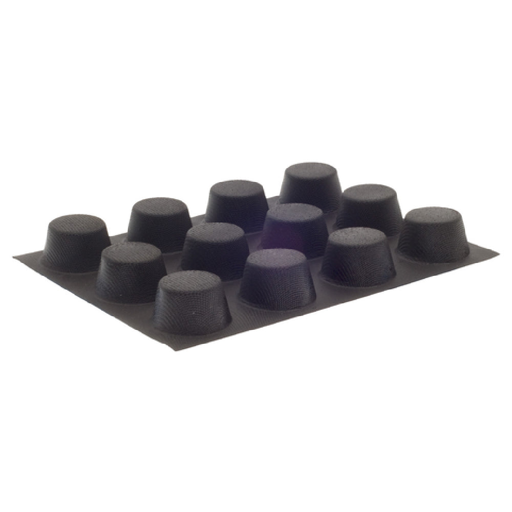The JB Prince M373 I Demarle Flexipan® Mold 15"L x 11-1/4"W (12) Muffin is a premium baking tool designed for both professional and home bakers seeking exceptional performance and versatility. This mold accommodates twelve muffins, each with a diameter of 2-3/4 inches and a height of 1-3/16 inches, providing a generous capacity of 4-1/2 ounces per muffin. Crafted from high-quality non-stick silicone in a sleek black color, it guarantees easy release and cleanup, enhancing the baking experience. The Flexipan® mold's flexibility is ideal for creating perfectly shaped muffins and can withstand a wide temperature range of -40°F to 536°F, making it suitable for both freezing and baking applications. This robustness ensures consistent results even in the most demanding culinary environments. Additionally, its NSF certification underscores its compliance with public health standards, ensuring safety and reliability in professional settings. Whether used in a bustling bakery, restaurant, or a home kitchen, the JB Prince M373 I Demarle Flexipan® Mold offers unparalleled durability and performance, making it an indispensable tool for achieving superior baking outcomes across a variety of culinary applications.