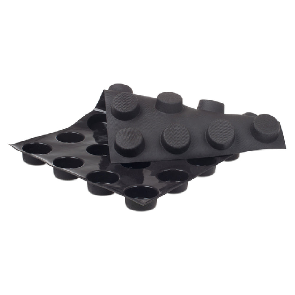 The JB Prince M376 G Demarle Flexipan® Mold 23"L x 15"W (24) Cylinder is a high-performance silicone mold designed for professional culinary applications. Each mold features 24 cylindrical compartments, each measuring 2-1/2" in diameter and 1" in height, with a capacity of 2-3/16 oz. This flexible and non-stick mold is crafted from high-quality silicone, allowing for easy release and cleaning, making it a versatile tool for pastry chefs and bakers. It operates effectively within a wide temperature range from -40°F to 536°F, suitable for both freezing and baking processes. The mold's black color and NSF certification ensure compliance with safety standards, making it ideal for commercial kitchens and foodservice operations. Its dimensions of 23 inches in length and 15 inches in width provide ample space for creative culinary designs, making it perfect for crafting uniform desserts, savory dishes, or intricate confections. The JB Prince M376 G Demarle Flexipan® Mold's combination of durability, flexibility, and wide temperature tolerance makes it a valuable asset to professionals in the bakery and patisserie industries, elevating the quality and presentation of their culinary creations.