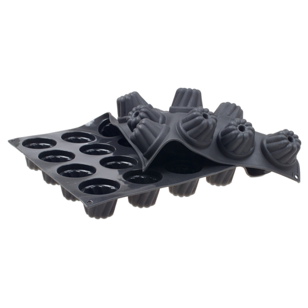 The JB Prince M378 A Demarle Flexipat® Mold is a versatile and flexible baking tool, measuring 26 inches in length and 18 inches in width, specifically designed to produce 24 kugelhopf cakes simultaneously. Each mold cavity measures 3 inches in diameter and 2 inches in height, holding a capacity of 5-1/10 ounces. This non-stick mold is composed of high-quality silicone that ensures effortless release of baked goods, reducing the need for additional greasing. Its temperature resilience is remarkable, withstanding an impressive range from -40°F to 536°F, making it suitable for a variety of culinary applications from freezing to high-heat baking. The black mold is also NSF certified, indicating its compliance with public health and safety standards, which is crucial for professional kitchens and bakeries. The JB Prince M378 A Demarle Flexipat® Mold's flexibility and non-stick properties make it an invaluable tool for pastry chefs and bakers aiming to achieve consistent, high-quality results in both mass production and artisanal settings. This mold is tailored to meet the demanding needs of the food service industry, ensuring efficiency and reliability in producing perfectly shaped kugelhopf cakes.