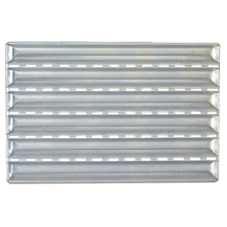 The JB Prince M455 Matfer French Bread Pan is a precision-engineered baking tool designed for professional and home bakers seeking consistency and quality in bread production. This pan features a spacious 26-inch length by 17-inch width, accommodating six individual loaves, each measuring 26 inches long by 2-1/4 inches wide. Constructed from durable aluminum, it ensures even heat distribution and robust performance, enhancing the baking process by delivering uniform browning and texture to each loaf. The JB Prince M455 is an essential asset for any bakery, catering to artisan bakers and commercial establishments alike by facilitating the production of multiple loaves simultaneously. Its large size and efficient design make it ideal for high-capacity baking environments, while its aluminum construction offers lightweight handling and easy maintenance. This French Bread Pan provides a reliable solution for creating classic French baguettes, ensuring each loaf meets the high standards expected by discerning bakers and their clientele. Whether used in a small artisanal bakery or a large-scale baking operation, this pan embodies the quality and craftsmanship essential to producing exceptional bread consistently.