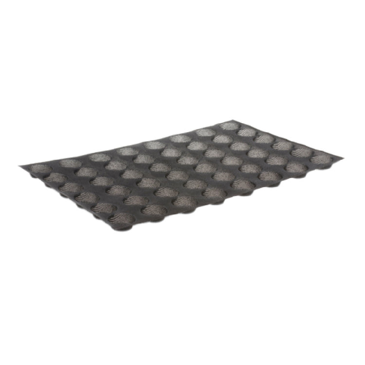 The JB Prince M457 D Demarle Silform Mold is a professional-grade baking mold measuring 25"L x 17-1/2"W, accommodating 48 round tartlets simultaneously, each with a diameter of 2" and a height of 1-3/16", and a 1-1/2 oz capacity. Designed to fit a standard US sheet pan, this mold is highly versatile, transitioning effortlessly from freezer to oven, withstanding temperatures up to 550°F. Its construction from non-stick mesh silicone in a sleek black finish ensures effortless release of baked goods and ease of cleaning, making it an essential tool for pastry chefs and bakeries aiming for efficiency and precision. NSF certification further underscores its adherence to safety and health standards, appealing to food service operations that prioritize compliance. The JB Prince M457 D Demarle Silform Mold is particularly valuable for high-volume commercial kitchens and artisanal craft bakeries, providing consistency in shape and bake quality across multiple tartlets, thus enhancing productivity and presentation in any professional setting.